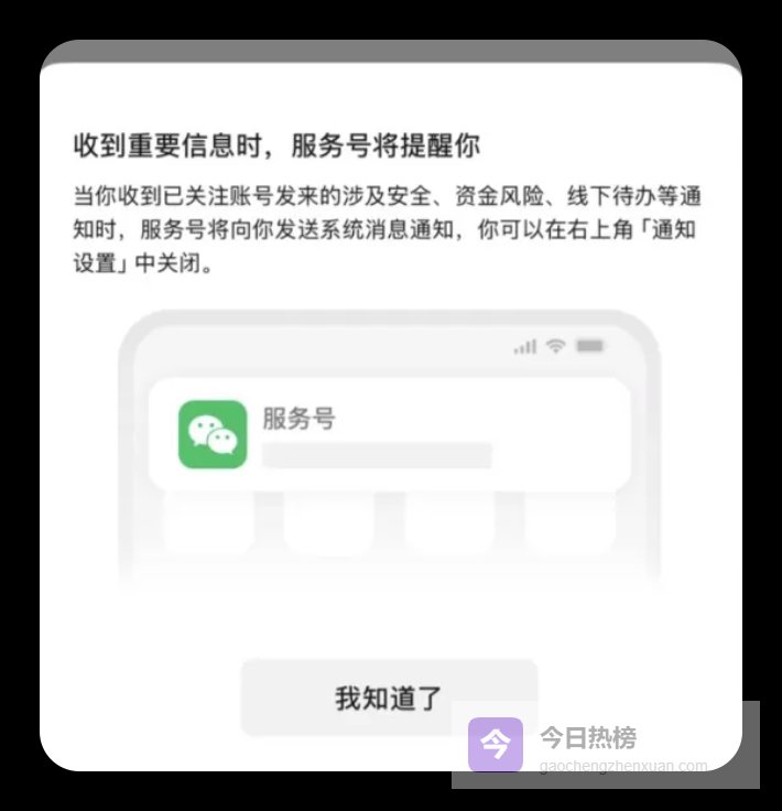 一项针对服务号的全新「系统级通知」功能正在测试中。