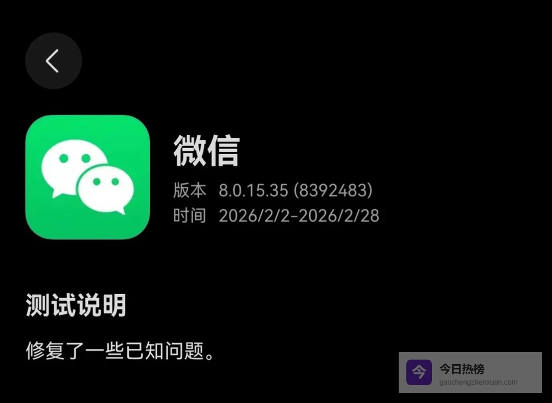 2 月 2 日,微信鸿蒙 8.0.15.35 版本在华为应用市场开启尝鲜测试。
