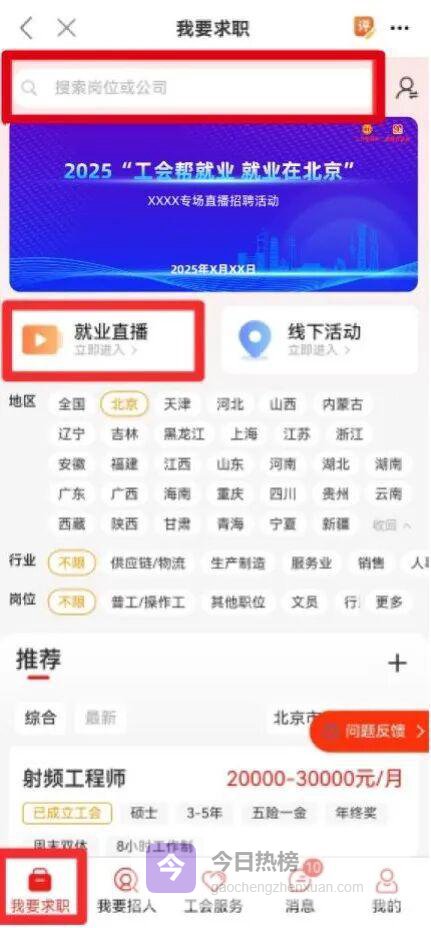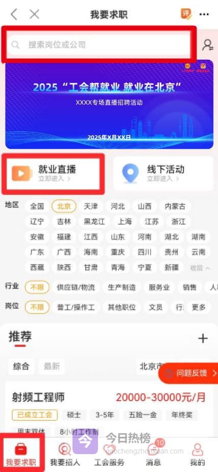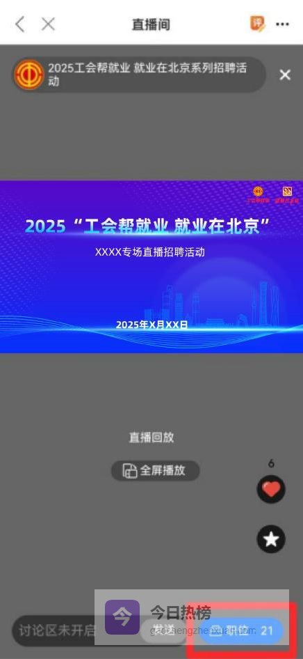 直播页面,点击右下角【职位】,选取本场适合职位进行简历投递;或点击【直播招聘】选择对应直播专场,点击右下角【查看岗位】,进行心仪职位投递;也可以直接“搜索岗位或公司”进行简历投递。