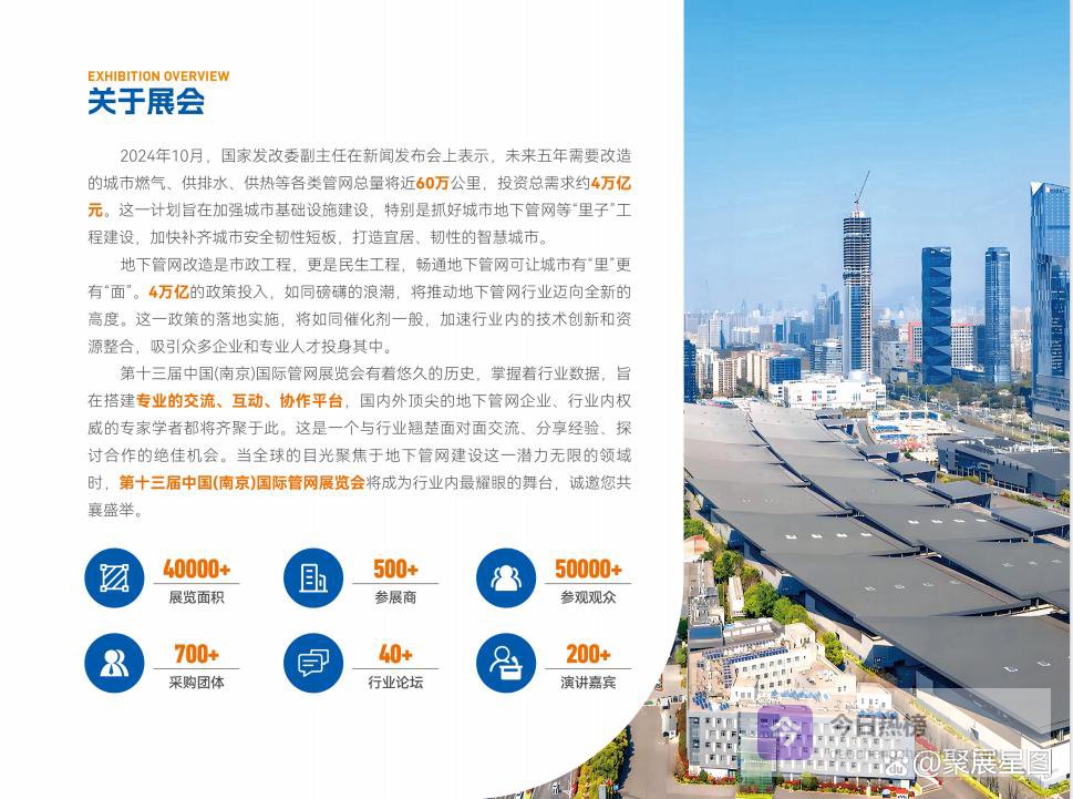 深耕行业需求,赋能产业发展,本届展会深度响应国家相关政策,搭建起多元融合的交流平台。同期将举办中国(2026·南京)国际塑料管道交流会、城市安全工程建设高峰论坛、智慧管网技术创新研讨会等多场高端活动,邀请行业专家、企业领袖、市政单位负责人齐聚一堂,解读国家关于城市管网建设、城市安全发展的最新政策,分享管网改造、安全工程建设的经典实践案例,探讨高效管网技术、长时安全防护、数字化管控等行业热点议题,为行业发展提供清晰的方向指引。此外,展会还设立政策解读专区,权威解读城市管网建设中央资金支持、碳足迹核查、安全标准规范等核心内容,助力企业精准把握政策红利,提升核心竞争力。