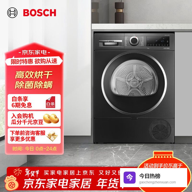 【京东自营】博世博世【papi推荐】4系烘干机家用10KG大容量热泵干衣机除菌除螨自清洁变频WQA2¥