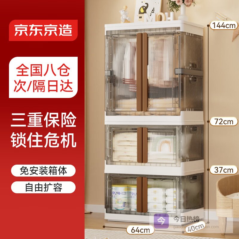 【京东自营】京东京造意式可可收纳柜免安装储物柜叠加式衣柜【共用顶盖】64面宽3层¥