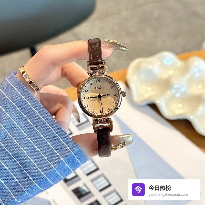 歌迪(GEDI)手表女学生小众复古简约小表盘初高中女生考试小巧皮带女士石英表 复古棕¥