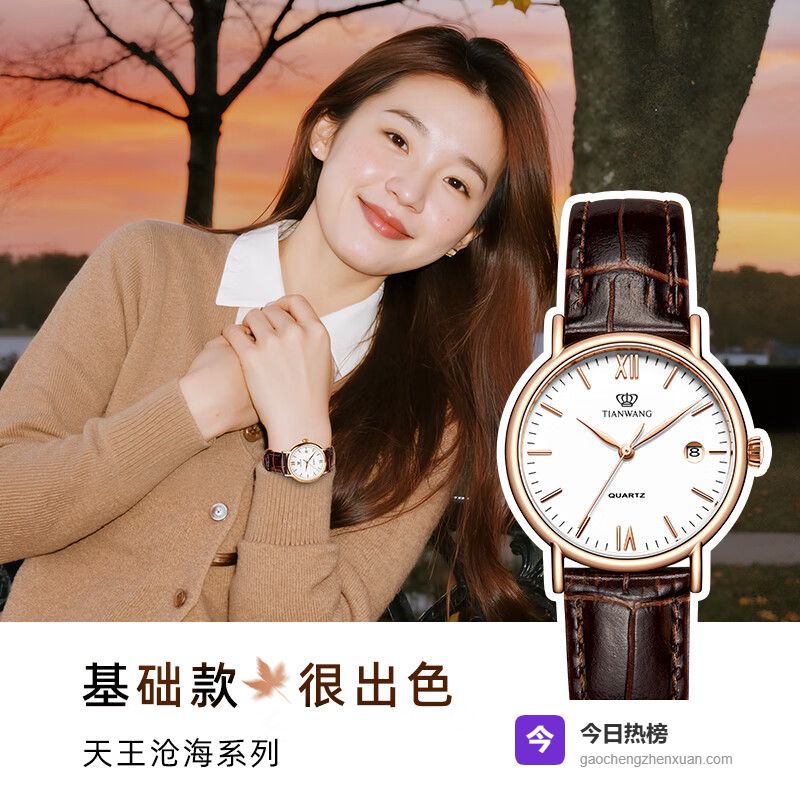 天王(TIAN WANG)手表女士石英表休闲百搭皮带情侣对表防水品牌腕表新年礼物送女友 【女表】玫瑰金棕带3874¥