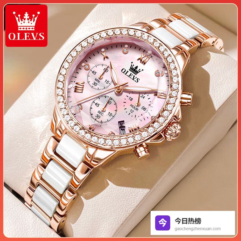 欧利时(OLEVS)瑞士认证品牌手表女潮流时尚女士手表夜光防水石英表多功能腕表 OLEVS-9999-玫瑰金粉面¥