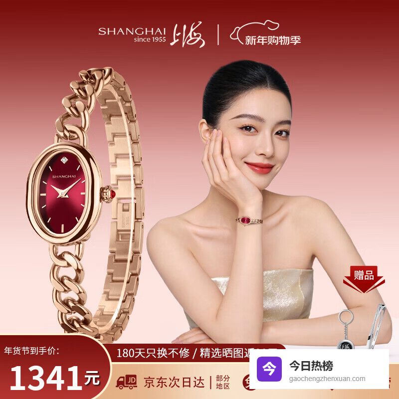上海(SHANGHAI)手表女繁花联名石英小金表贝母表盘女士手表新年礼物送女友S2700L 【复古时尚】酒红盘珠宝链 女士新年礼物¥