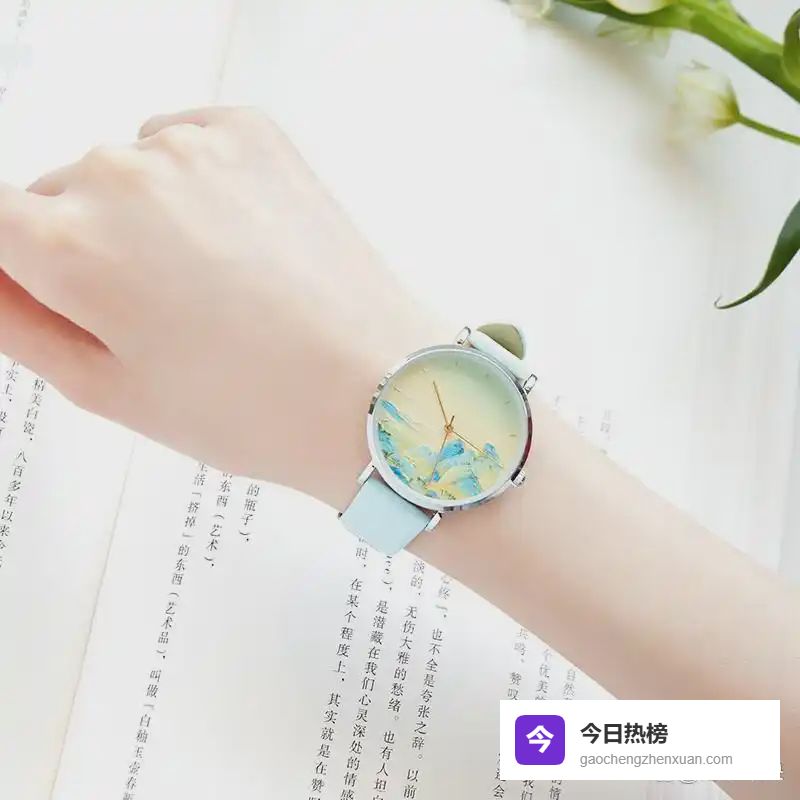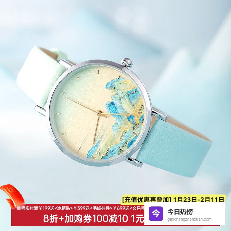 点评:这款手表的山水画表盘设计真的挺特别,把传统的中国山水画融入到腕间,一眼就能感受到那份清新雅致,很有文化气息。青绿的配色看起来特别雅,戴在手腕上能显得温婉又有格调,还挺适合喜欢古典风的女生。精准的日本进口机芯,让你不用担心走时不准,挺靠谱的。