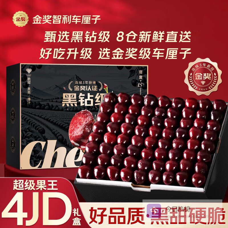 核心优势:✅ 巨果控福音:4J级在市面上属于稀缺资源,尤其适合作为高端年礼。果肉厚度达到8-9mm,咬下去的爆汁感令人难忘。✅ 灵活包装选择:提供5kg原箱和3斤尝鲜装两种规格,小家庭不必担心吃不完造成浪费。✅ 严苛品控流程:每颗车厘子都经过糖度检测和硬度测试,确保到达消费者手中时处于最佳赏味期。
