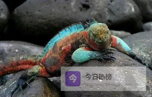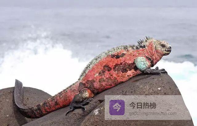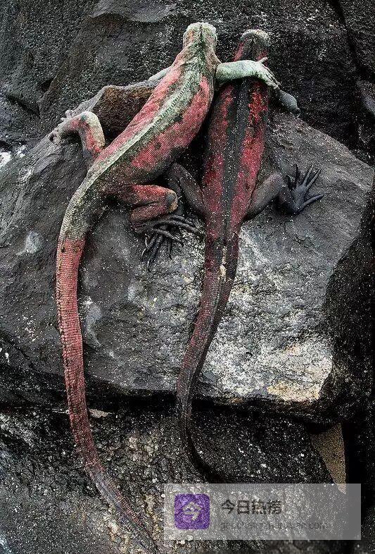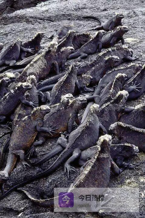 达尔文第一次登上群岛时,把海鬣蜥描述成“黑色的蜥蜴”。其实, 不同亚种、不同季节,甚至不同岛屿,它们的体色都会变化。