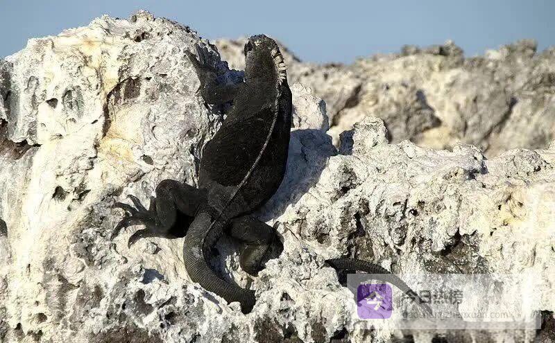 海鬣蜥,又名加拉帕戈斯海鬣蜥或钝鼻蜥, 是唯一一种把家安在科隆群岛的海鬣蜥科成员。它们能在海水里自如觅食,也能在岩石、沼泽甚至红树林里打盹。群岛的所有岛屿都是它们的领地,从南端的费尔南迪纳到北端的伊莎贝拉,都能看到它们在礁石上晒太阳的悠闲身影。
