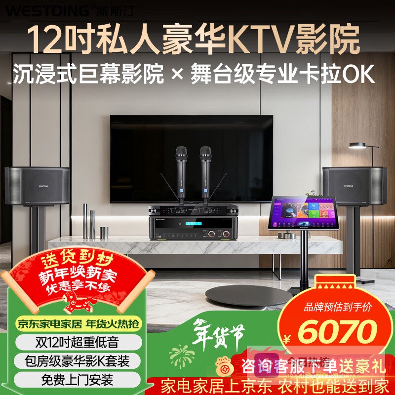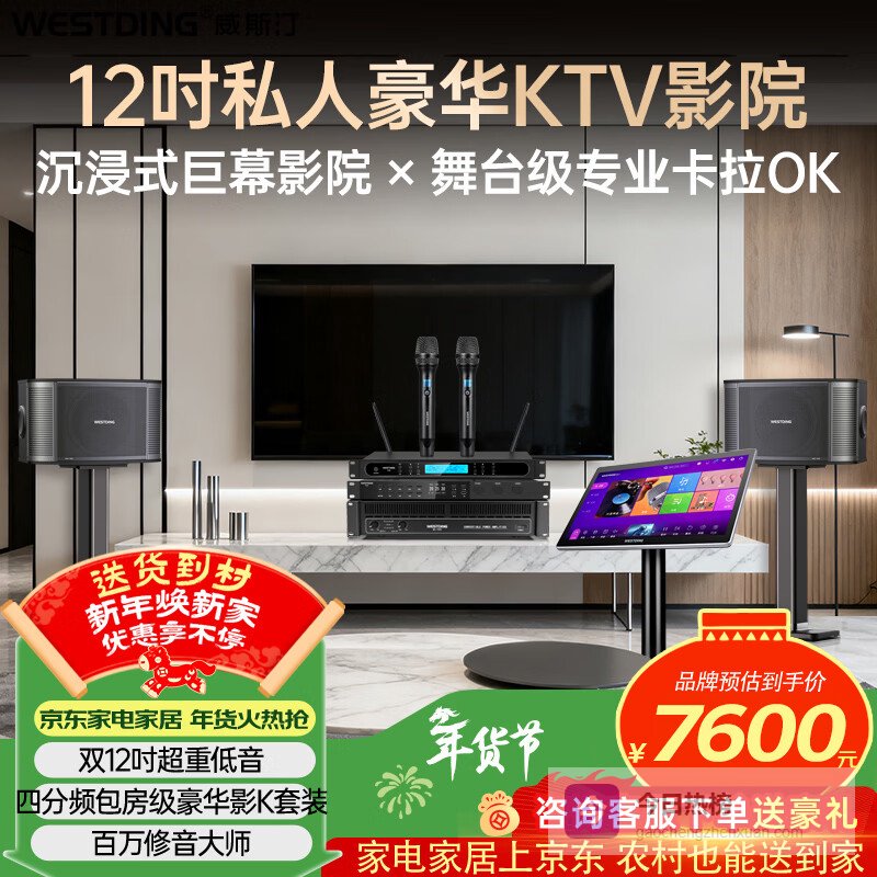 【京东自营】威斯汀音响家庭ktv唱歌全套设备卡拉ok家庭影院商超客厅舞台高端大功率12吋三分频音箱套¥