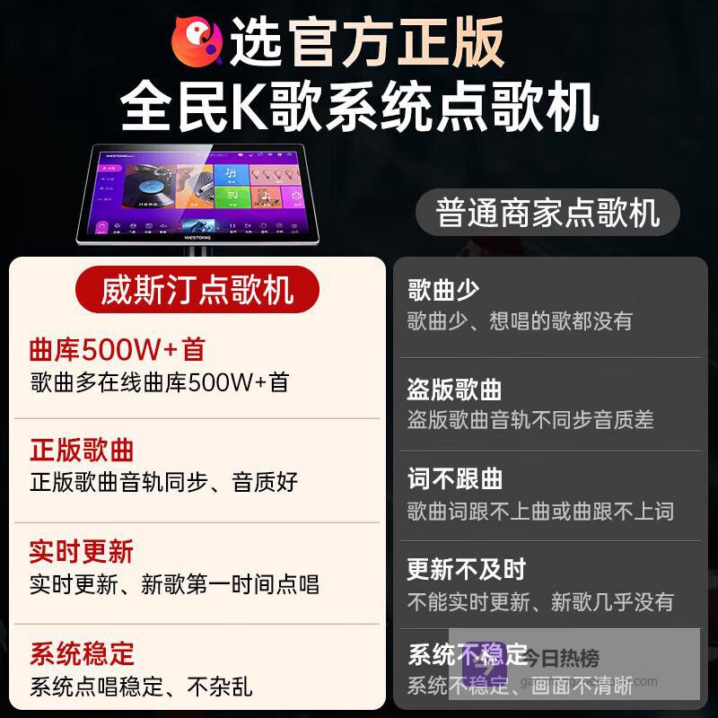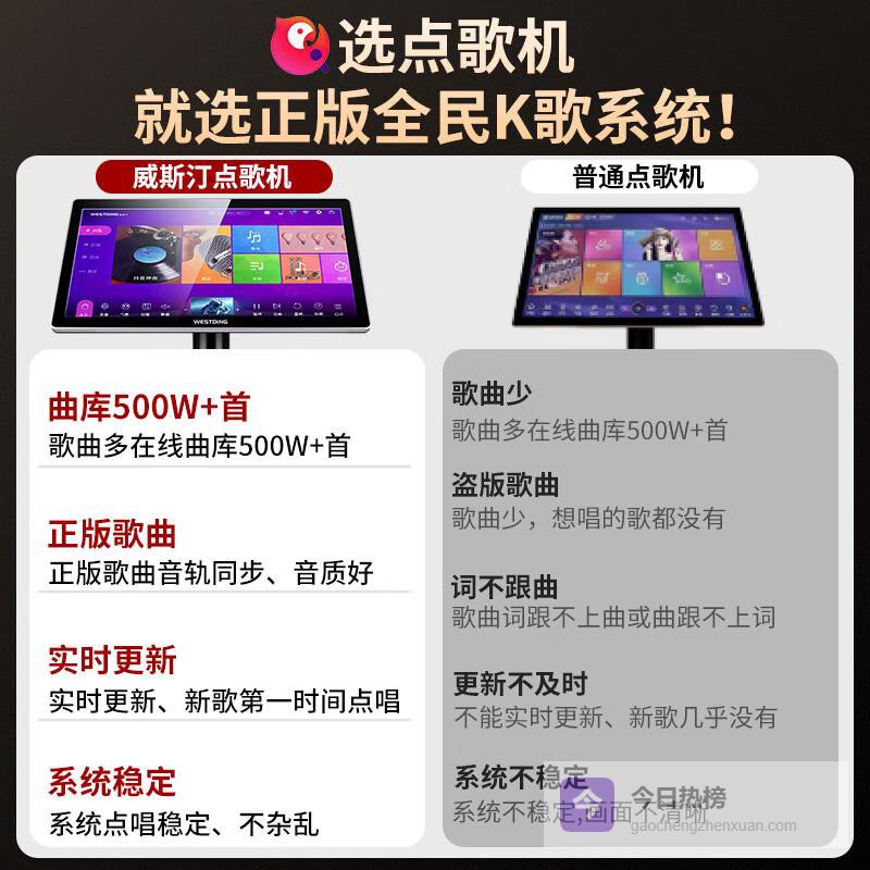 1️⃣高品质音响:威斯汀品牌保证了卓越的声音表现,给家庭KTV带来极致的音乐享受。每一个音符都清晰可闻,让您仿佛置身于现场演出,感受音乐的魅力。这款设备是音乐爱好者的不二之选,能为每一次聚会增添无限欢乐。