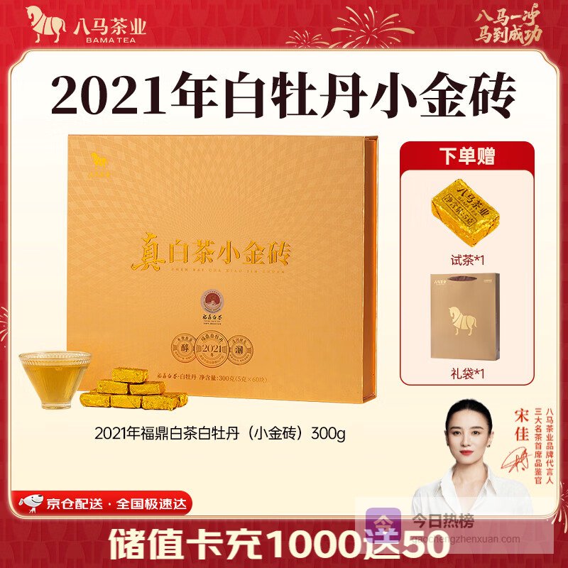 八马茶业 福鼎白茶 白牡丹 小金砖 2021年原料 送礼茶叶 礼盒装 300g(5克*60颗)¥
