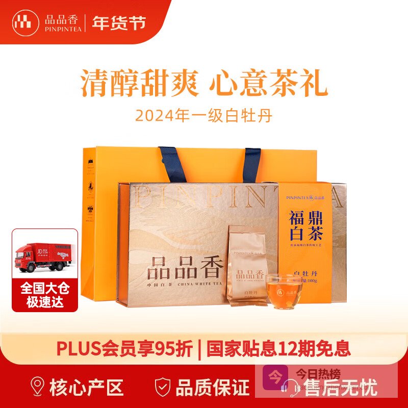 品品香白茶 福鼎白茶 2024年新茶白牡丹茶叶100g礼盒装送礼¥