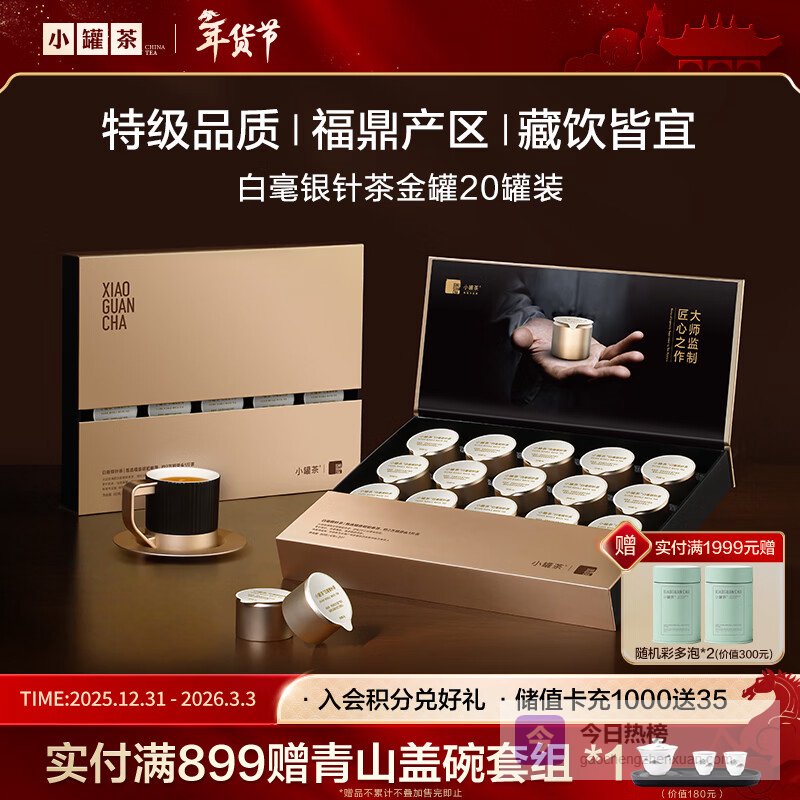 说到面子工程,还得看小罐茶这套"王炸组合"。20个金色小罐排开,每个里面4g特级银针,开罐瞬间毫香扑鼻。虽然单价高,但算下来: