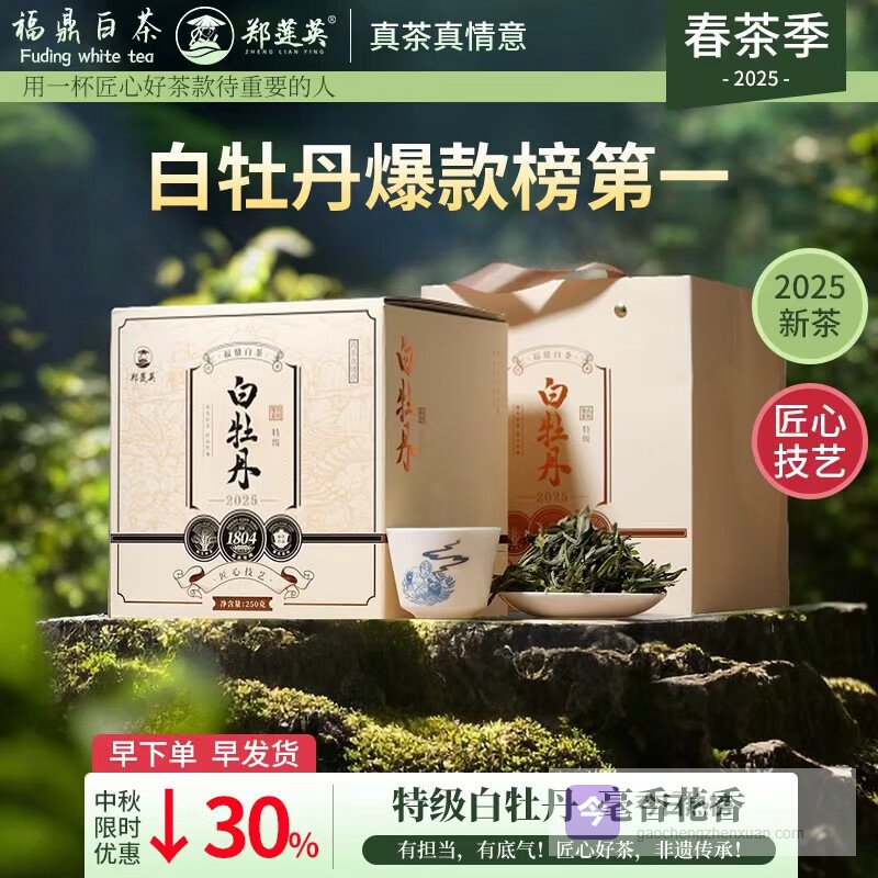 郑莲英白茶2025年特级白牡丹福鼎白茶老白茶散茶过年送礼茶叶礼盒250g¥
