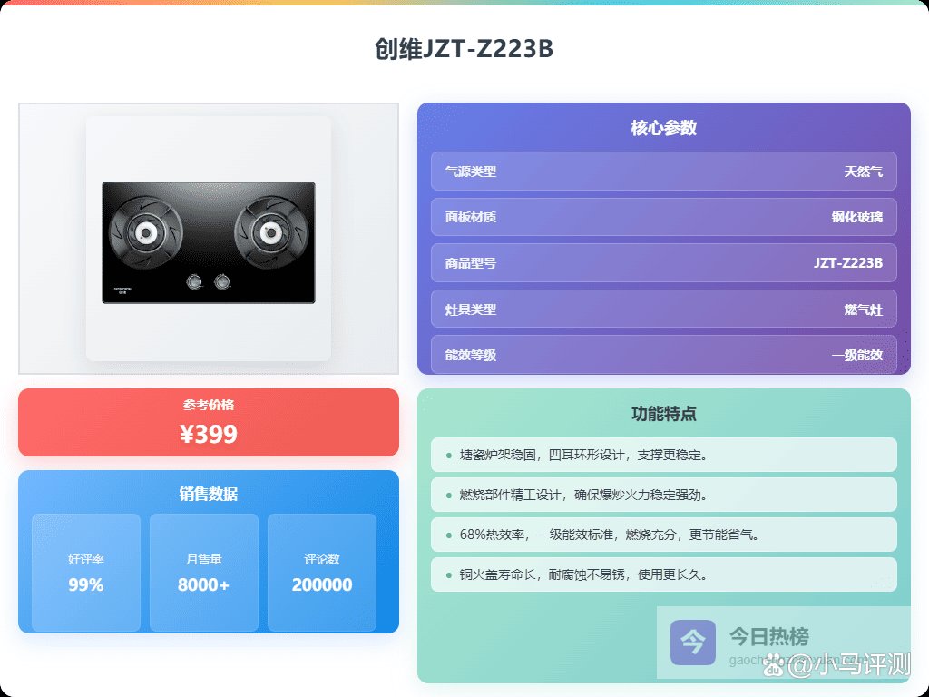 而且,现在大家生活节奏都快,做饭也追求效率,加热速度慢的灶具真的让人着急,用着也觉得不顺心。一个好用的钢化玻璃灶,不仅要安全、火力足,还得加热快,最好还能省点燃气,用起来省心。是不是也想知道钢化玻璃灶到底怎么样,是不是真的好用?那当然是值得买的啦!下面给大家挑了10款,感兴趣的可以了解下。