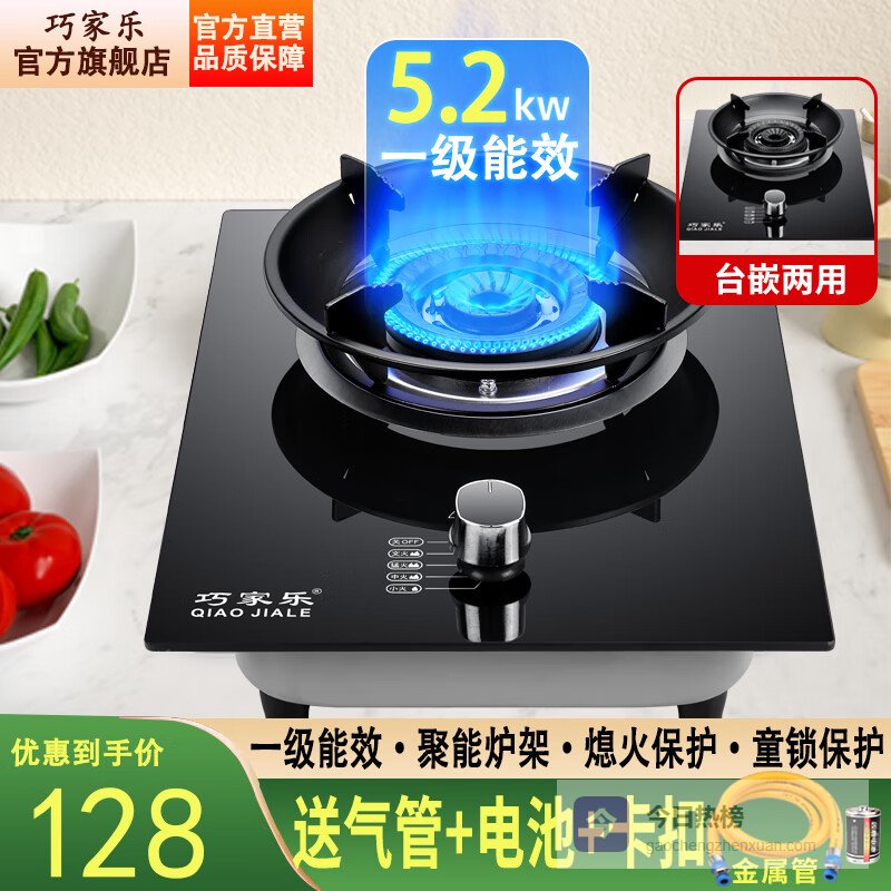 巧家乐 燃气灶单灶液化气灶天然气灶煤气炉台式嵌入式煤气灶炉具灶具单灶大火力猛火灶台 熄火保护燃气灶 5.2kw聚能猛火+聚能炉架+钢化玻璃丨熄保 煤气罐/液化气¥