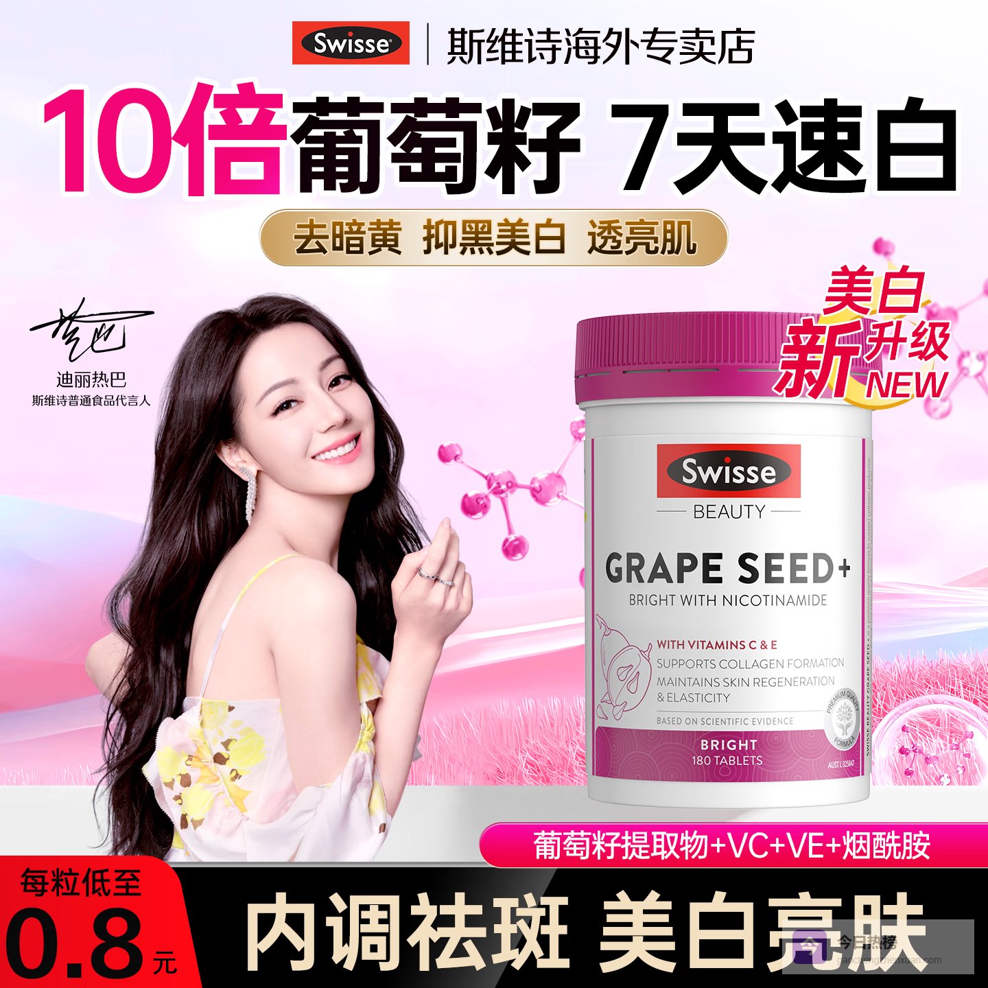 推荐理由:丰富葡萄籽提取物、多重亮肤效果、便捷内服胶囊