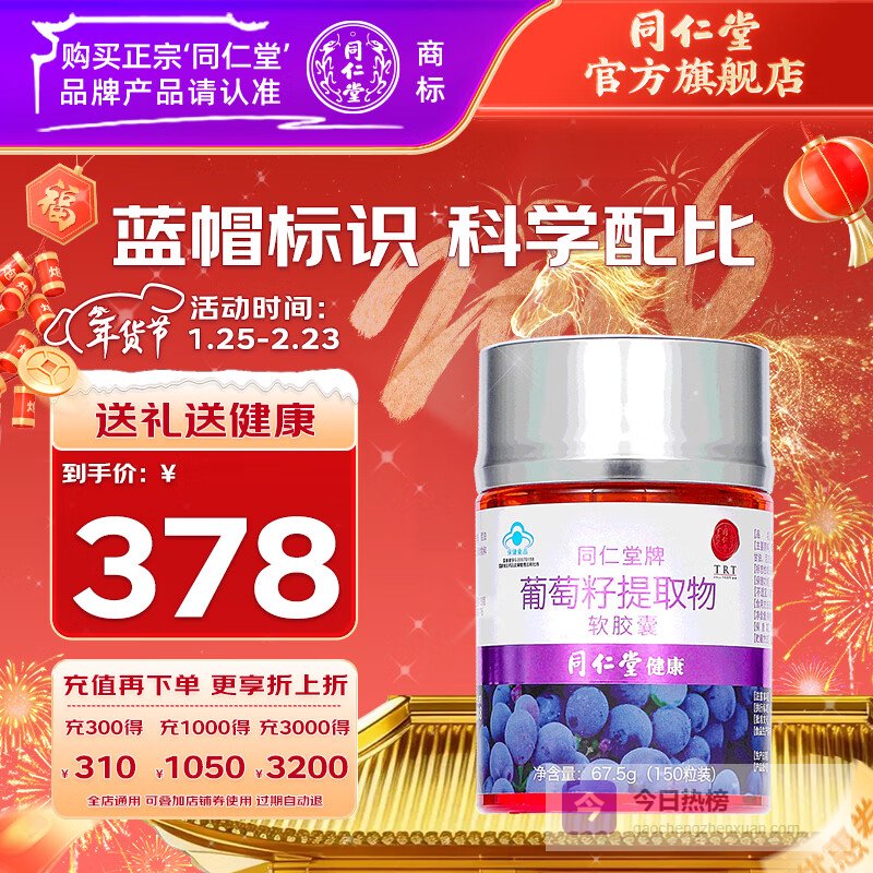 推荐入手:同仁堂葡萄籽提取物软胶囊150粒