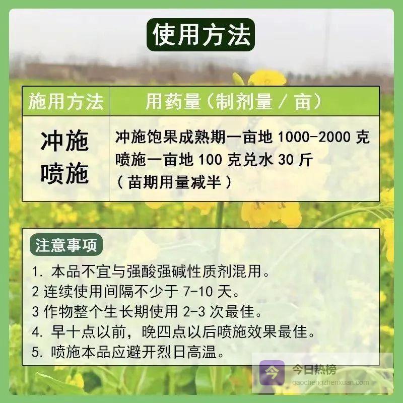 灌浆加速器:油菜专用叶面肥⚠️ 常规追肥要挖沟覆土,本品对着叶片喷就行 ✅ 纳米级营养粒直送籽粒,出油率提升15%