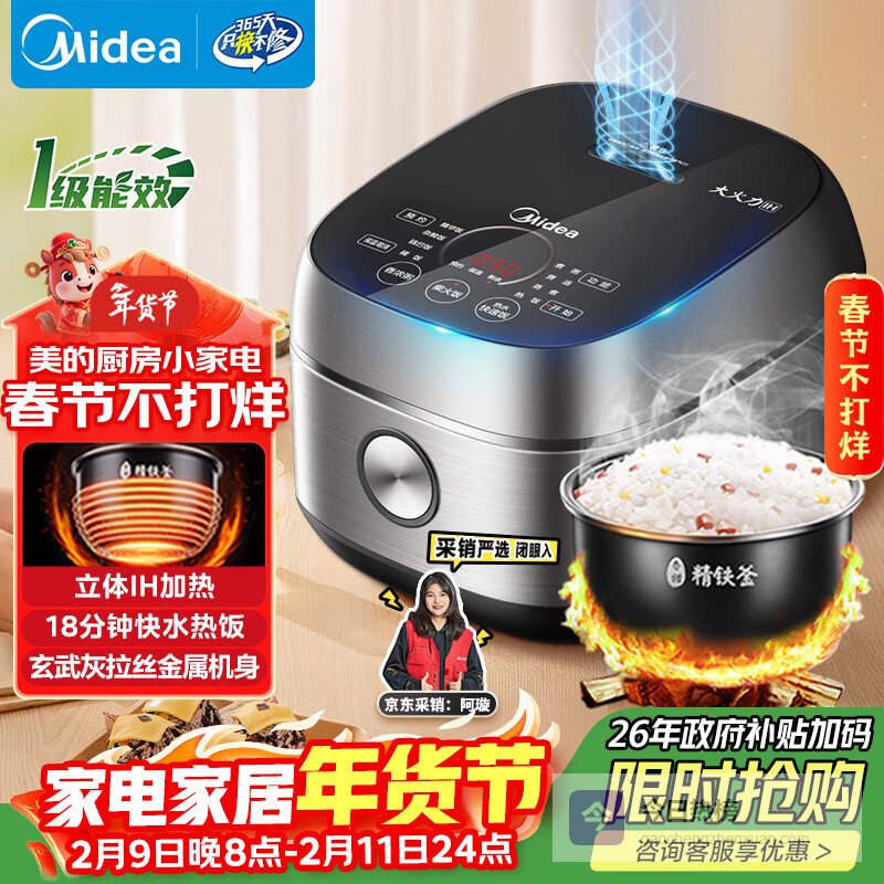 【京东自营】美的纤V系列电饭煲4-5人IH加热电饭锅家用4L大容量智能预约防粘胆蒸米饭锅年货好物FB¥