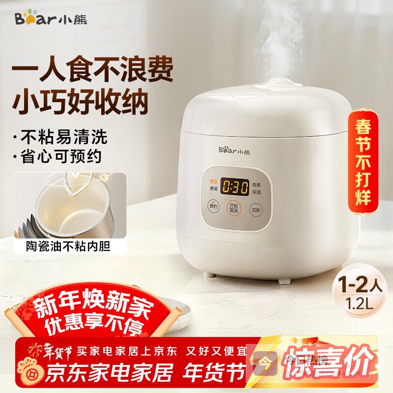 【京东自营】小熊电饭锅1-2人小电饭煲可预约多功能宿舍煮饭煮粥不粘内胆小型迷你饭锅1.2LDFB-H¥