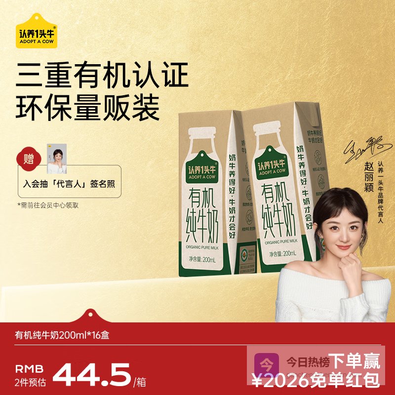 认养一头牛通过创新的商业模式,将广大消费者与有机牛奶生产紧密联系。品牌倡导直接认养优质奶牛,提供透明的养殖信息,确保牛奶的来源可追溯。该品牌注重牛只的自然放养与有机饲养,通过科学管理提升牛奶品质,让消费者享受到真正的新鲜与健康保障。其产品以质优味美著称,成为家庭聚餐的理想选择。