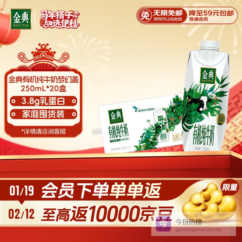 推荐入手:金典有机纯牛奶250ml*32盒