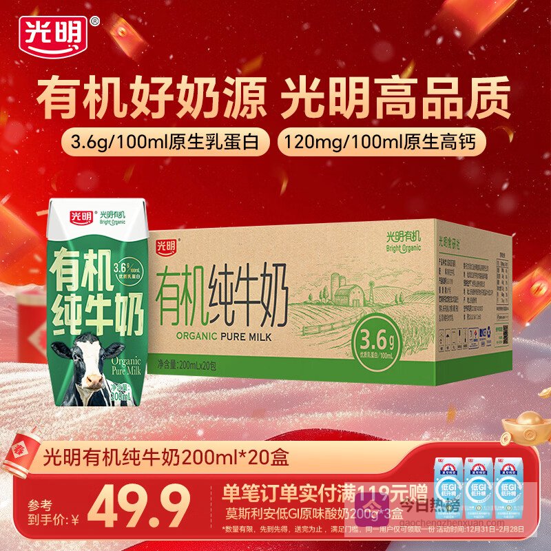 推荐入手:光明有机纯牛奶年货礼盒200ml*20