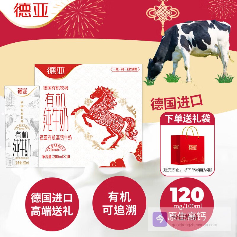 【京东自营】德亚德国进口【有机】高钙纯牛奶200ml*10盒高端年货节礼盒送礼可追溯¥