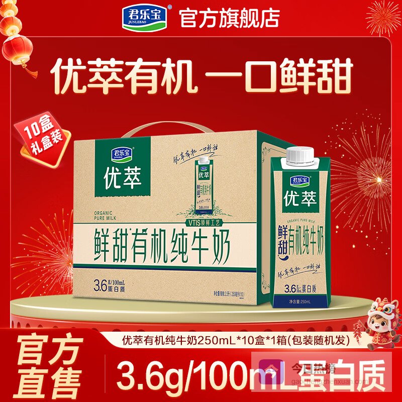 推荐入手:君乐宝优萃有机纯牛奶200ml整箱装