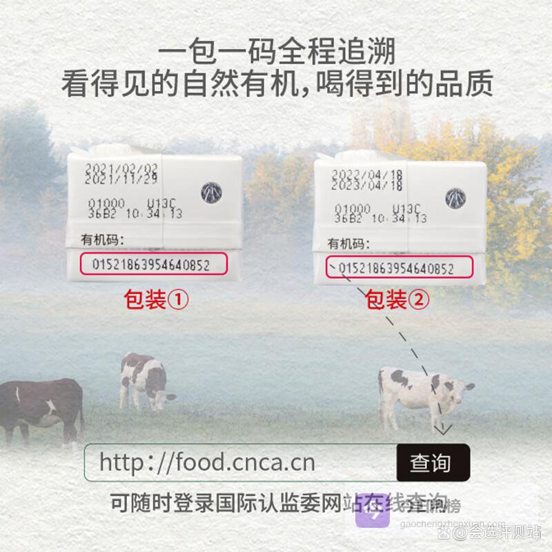 严格认证保障:产品经过中国有机标准的严格认证,确保消费者在享受美味的同时,更能放心其安全性。每盒牛奶都有独立的追溯二维码,消费者可以轻松查询每个环节的信息,从原料到配送,透明化管理让你更加安心。这样的认证让营养与安全并重。