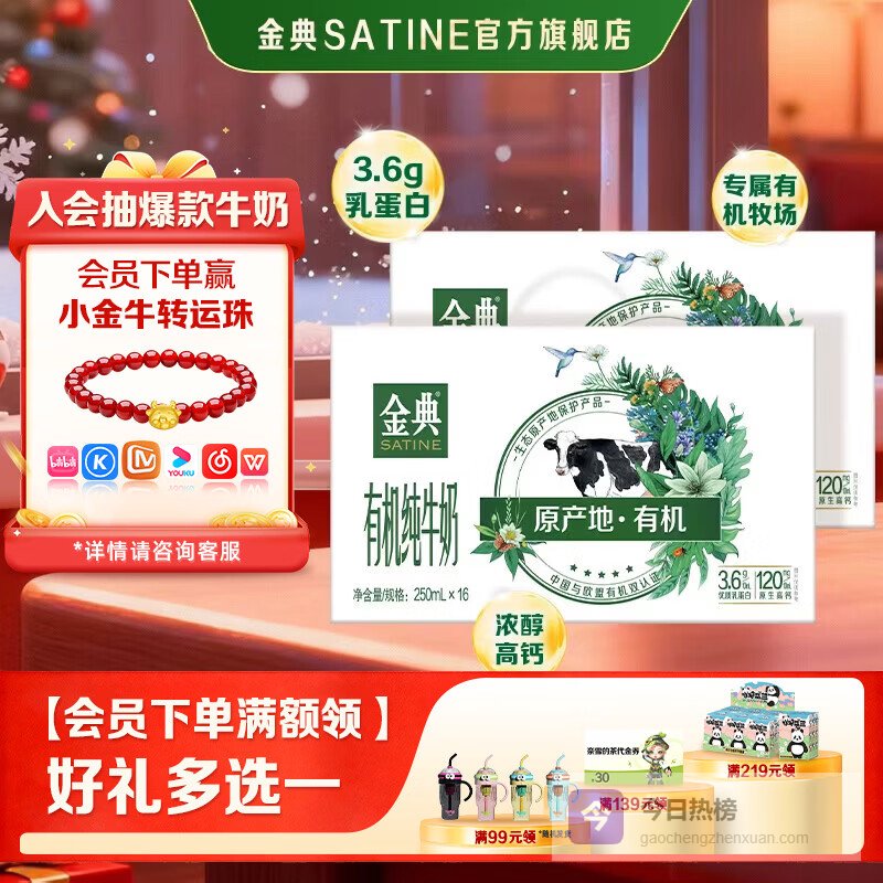 【品牌直营】金典有机纯牛奶3.6g乳蛋白早餐伴侣牛奶年货礼盒装12月产有机纯牛奶250ml*16盒*¥