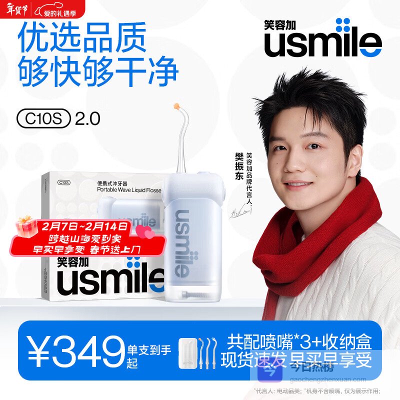 usmile笑容加冲牙器伸缩便携式洗牙器生日礼物新年礼物情人节礼物 C10S晴山蓝2.0¥