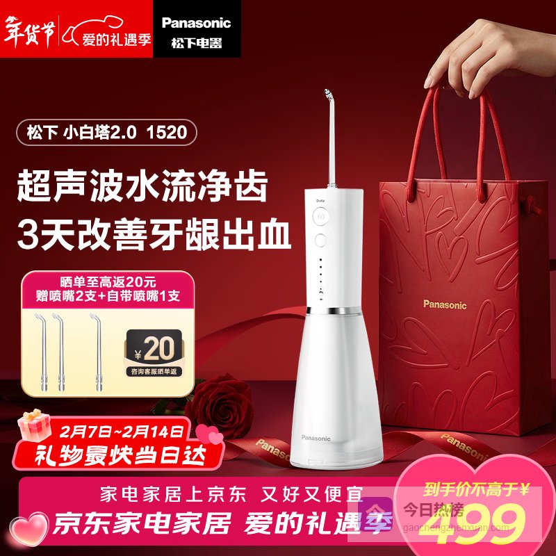 松下(Panasonic)小白塔2.0冲牙器成人超声波洁牙器牙齿冲洗器洗牙器水牙线牙结石情人节礼物新年会生日礼品EW1520¥