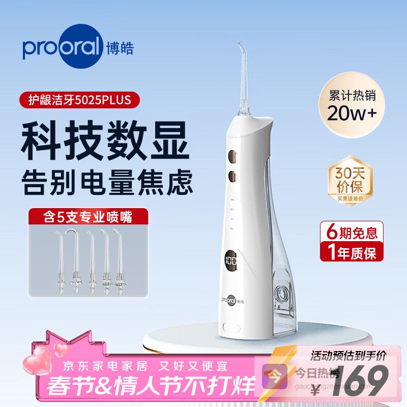 博皓(prooral)【情人节礼物】5025Plus冲牙器手持立式洗牙器带数显水牙线洁牙器 象牙白270ml¥