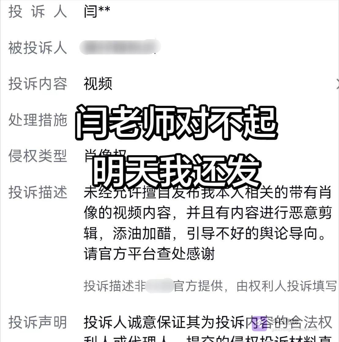 第三个手段更狠,直接把议论自己的网友给举报了,理由是对方用了自己照片侵犯肖像权,这一招每次都能成。