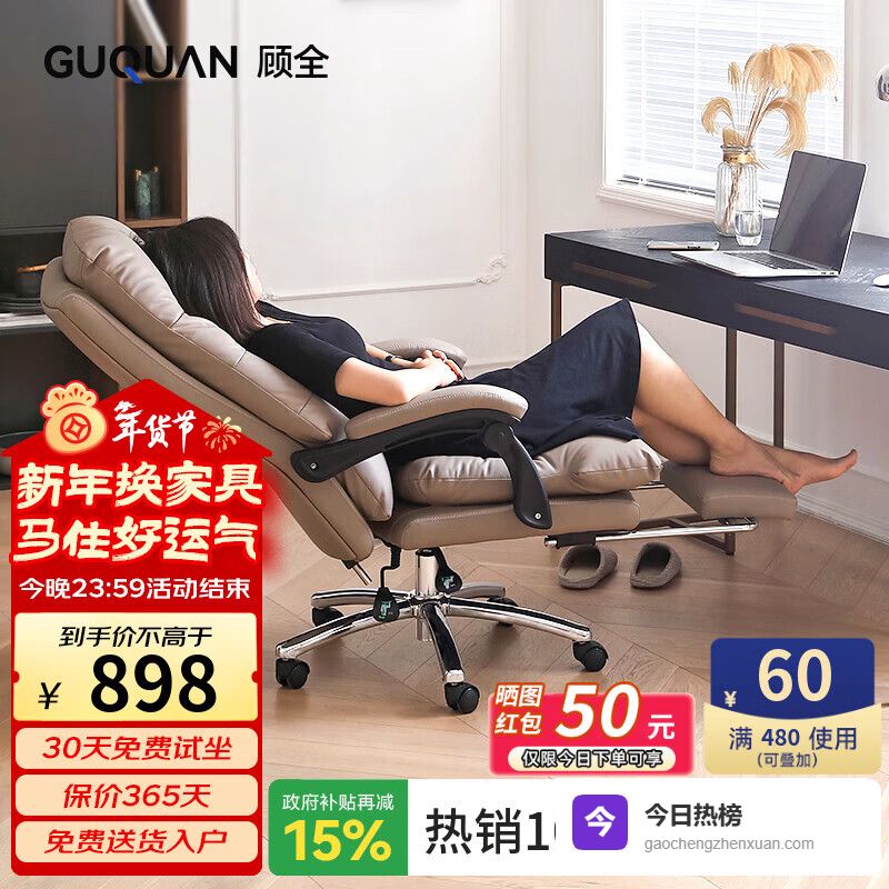 推荐入手:顾全可躺真皮办公椅C533