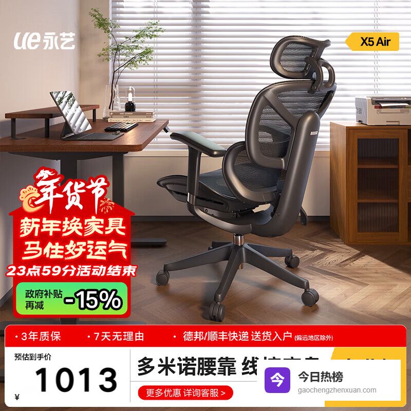 推荐入手:永艺X5 AIR人体工学椅黑色电竞办公椅