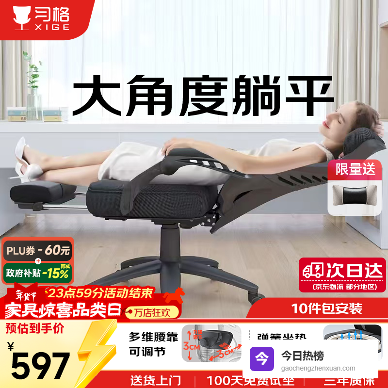 推荐入手:习格人体工学办公椅可躺转椅