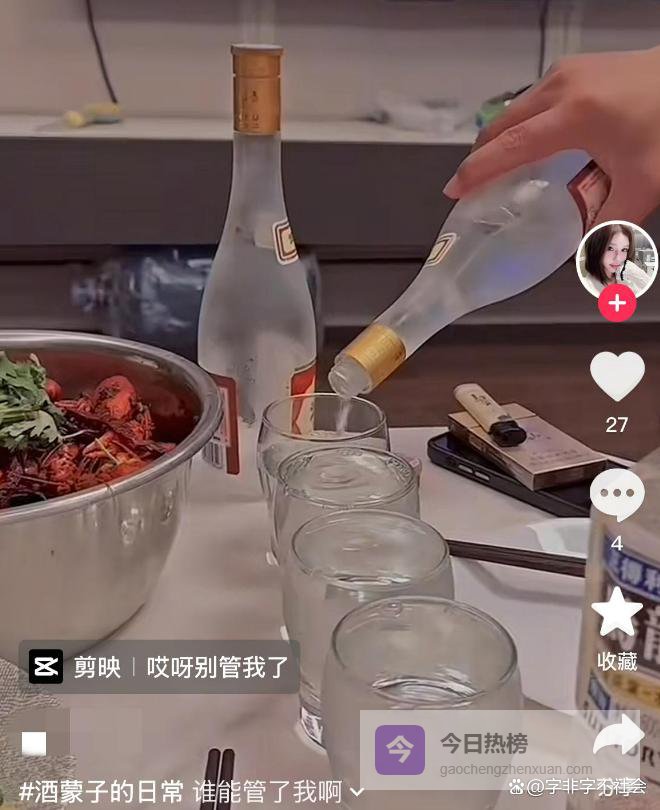 不光是嘴上说,她喝酒的视频更是让人触目惊心:镜头里,汾酒倒得满满四大杯,旁边还摆着几十瓶啤酒,虽说都是和朋友一起喝,但这样的量,哪怕是壮汉也扛不住,更何况是一个 20 岁的姑娘。咱普通人偶尔喝一杯解解闷,都要缓好几天,可她却把喝酒当成日常,一天两场,日复一日地消耗着自己的身体。