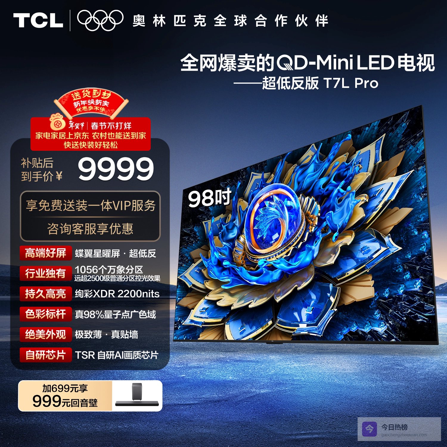 TCL电视 98T7L Pro 98英寸 QD-Mini LED 蝶翼星曜屏 万象分区 绚彩XDR 98/100英寸 国家补贴 护眼¥