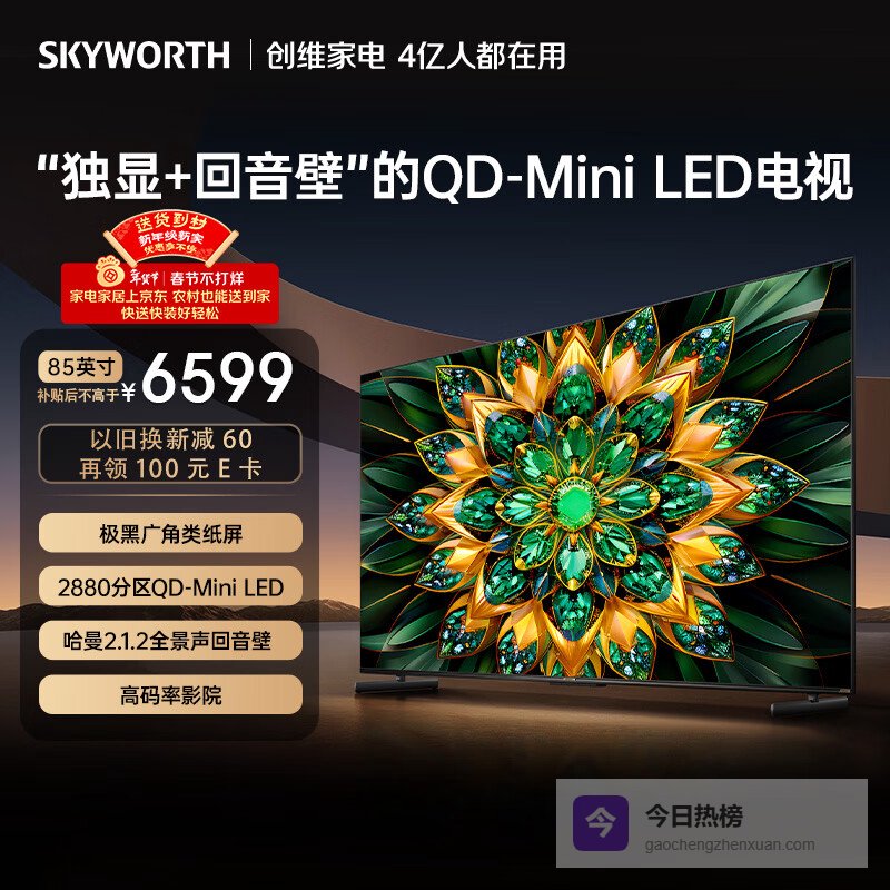 创维电视A6F Pro 85英寸 2880分区QD-Mini LED 极黑类纸屏 哈曼音效 国家补贴¥