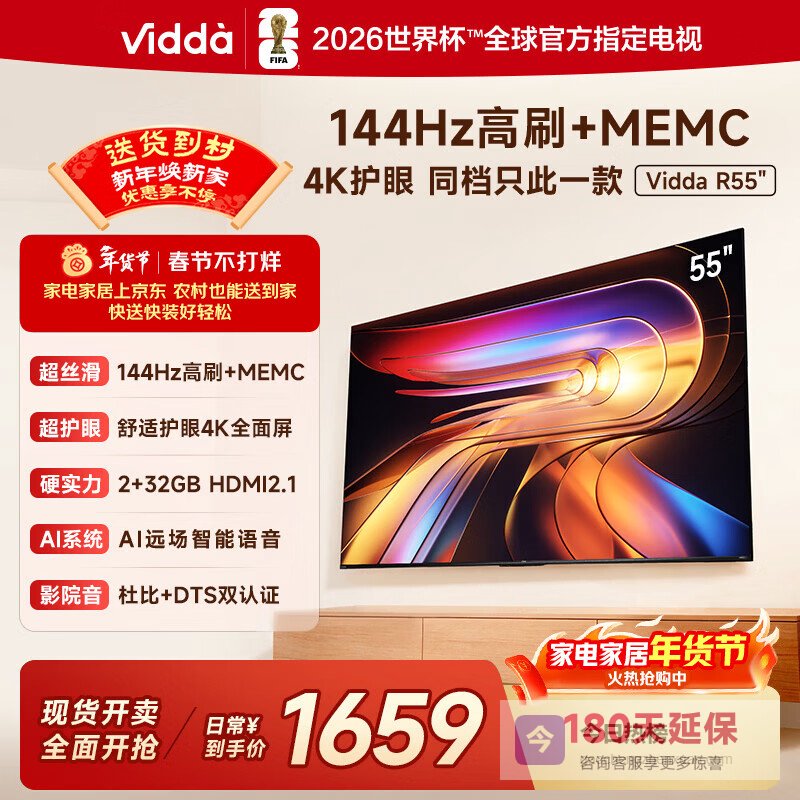 Vidda海信电视55英寸 R55 一级能效 144Hz高刷 2+32G 以旧换新国家补贴游戏液晶电视55V1KD-R¥