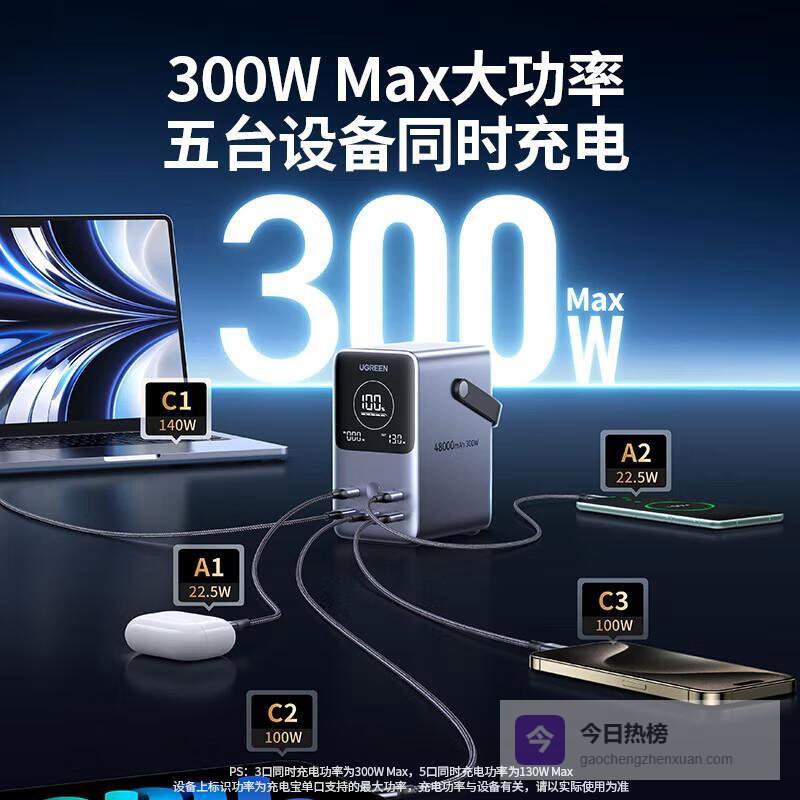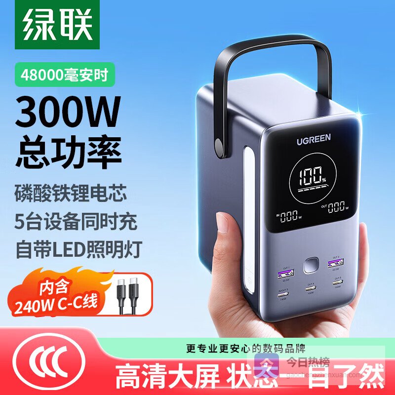 绿联笔记本充电宝300W快充48000毫安大容量PD140功率移动户外电源300W快充移动电源480¥