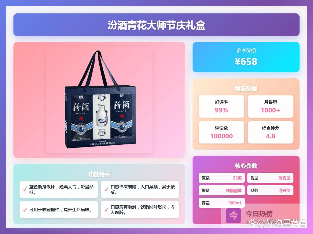 最近总有人问我“汾酒白酒买哪个好喝?”,说实话,这问题真不好一概而论。毕竟每个人的口味不一样,喜欢的香型和口感也各不相同。但要说汾酒,那还是有几款值得一试的,至少我自己喝下来感觉还不错。它的清香型特点很突出,入口挺顺,不会太辣,而且喝完之后嘴里留香,这点我个人挺喜欢的。至于“怎么样”、“好用吗”、“值得买吗”这些问题,我觉得是肯定的,关键看你喜欢什么味道。
