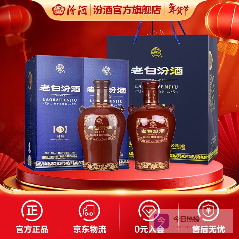 汾酒 老白汾酒 清香型白酒 喜事宴请 年节送礼 53度 475mL 2瓶 老白汾封坛15 双瓶装(内含礼袋)¥