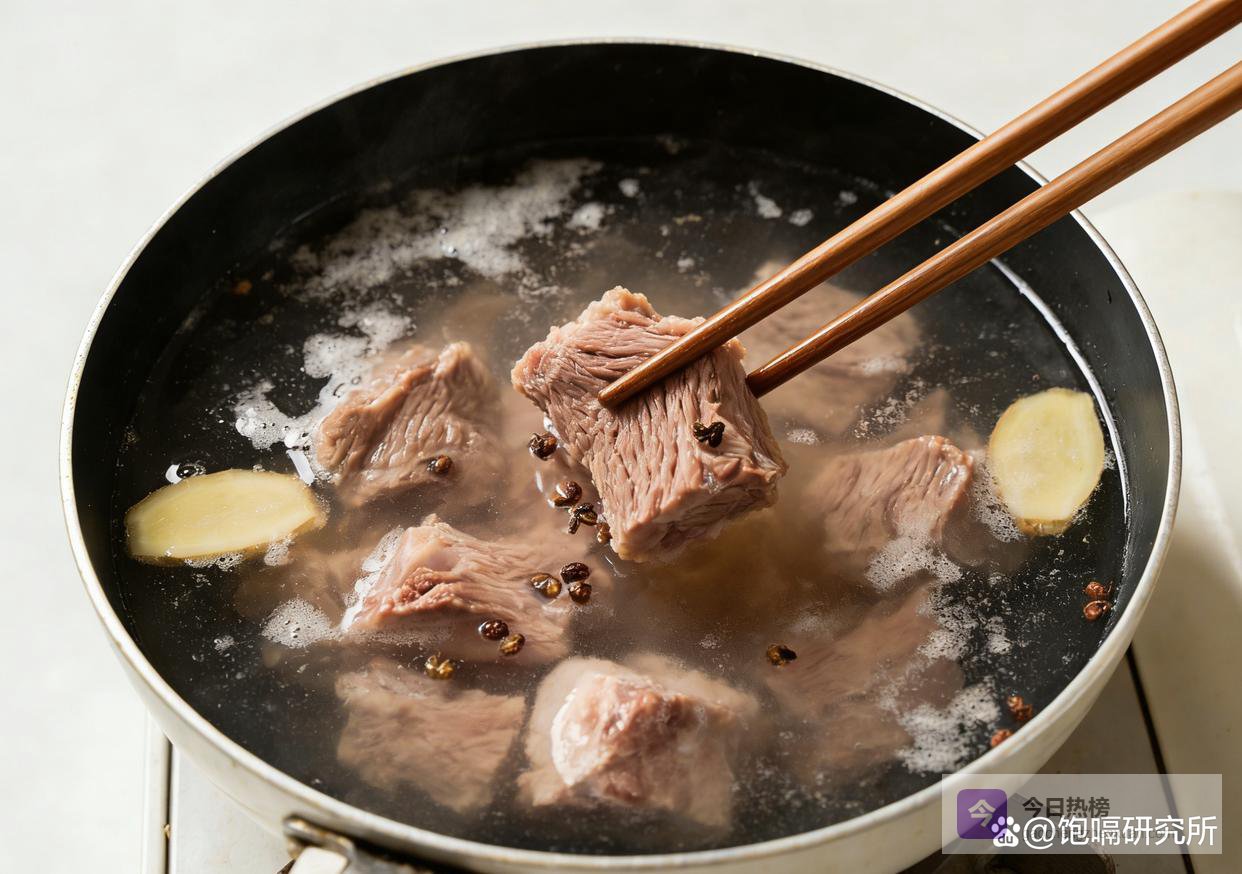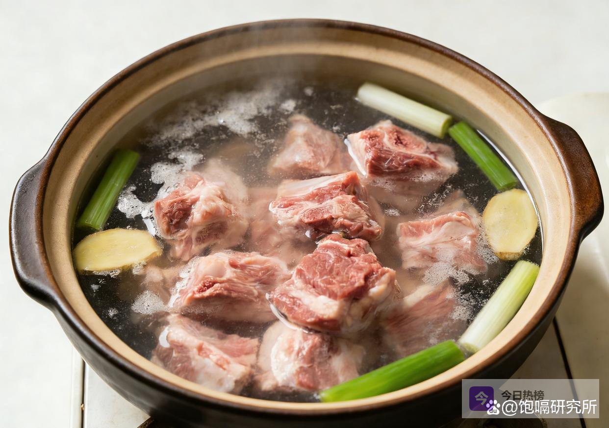 第一步处理羊肉是关键,也是去膻的核心。把羊肉切成大块,冷水下锅,放入3片姜、1勺料酒和几粒花椒,大火煮开后撇掉表面的血沫——这步可别偷懒,血沫是膻味的主要来源,撇干净才能保证汤的清爽。撇完沫后再煮3分钟,把羊肉捞出来用温水冲洗干净,切记别用冷水,不然羊肉遇冷会收缩变柴,这都是实打实的经验教训。