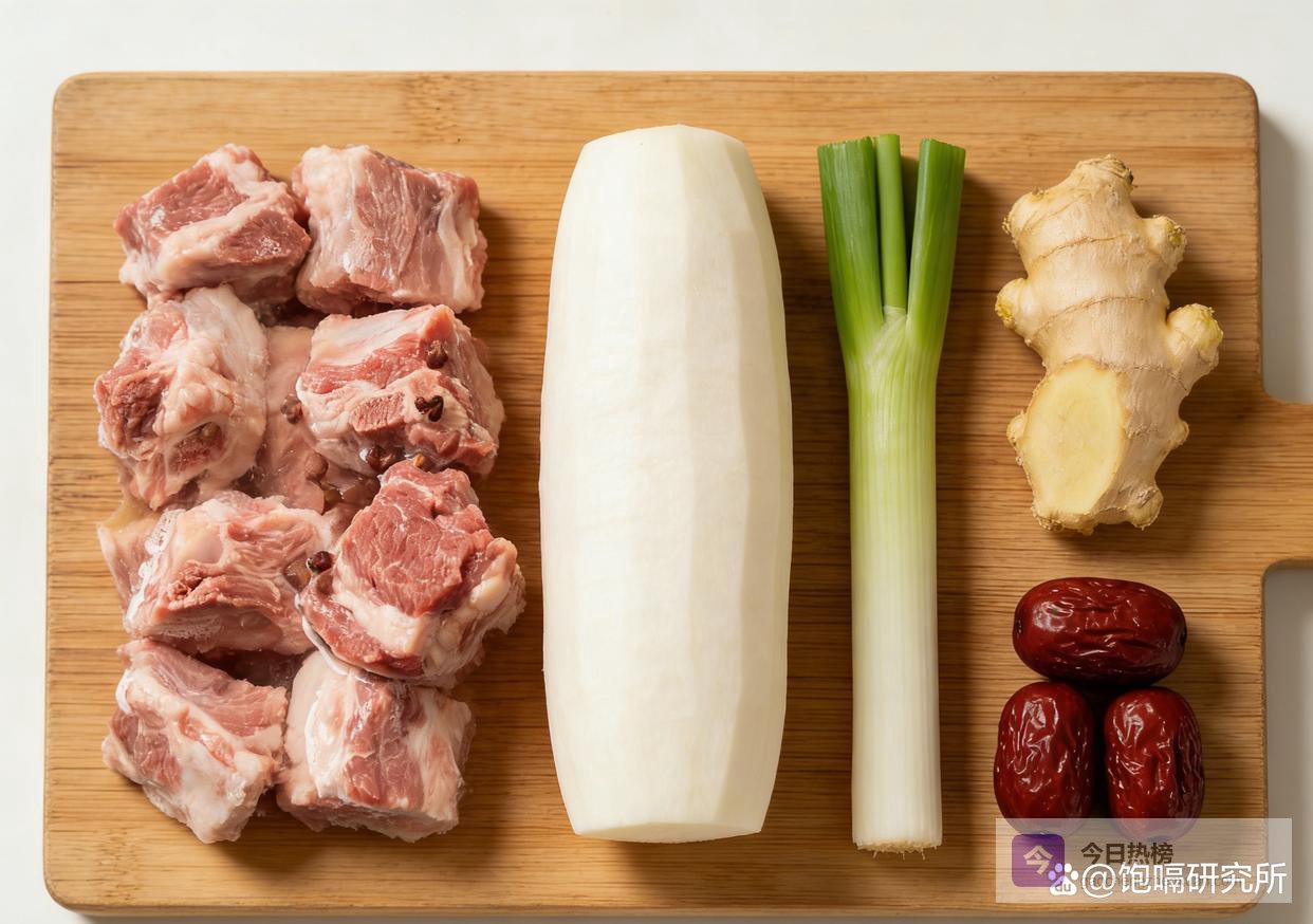 以前总觉得炖羊肉是技术活,怕做出来又膻又柴,直到摸清了门道才知道,这菜压根没想象中复杂,新手也能零翻车。咱先备齐食材:带骨羊肉500克、白萝卜1根、生姜1块、大葱1段、花椒少许、料酒1勺、盐和白胡椒粉适量,要是喜欢鲜劲儿,还能加两颗红枣提味,材料都是菜市场随手能买到的。